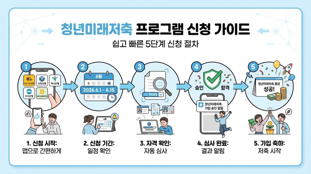 2026년 6월 1일부터 15일까지 1차 가입 신청을 받으며, 출생연도 끝자리에 따른 5부제가 시행될 예정입니다. 취급 은행은 KB국민, 신한, 하나, 우리, NH농협 등 주요 11개 시중은행 및 지방은행입니다.